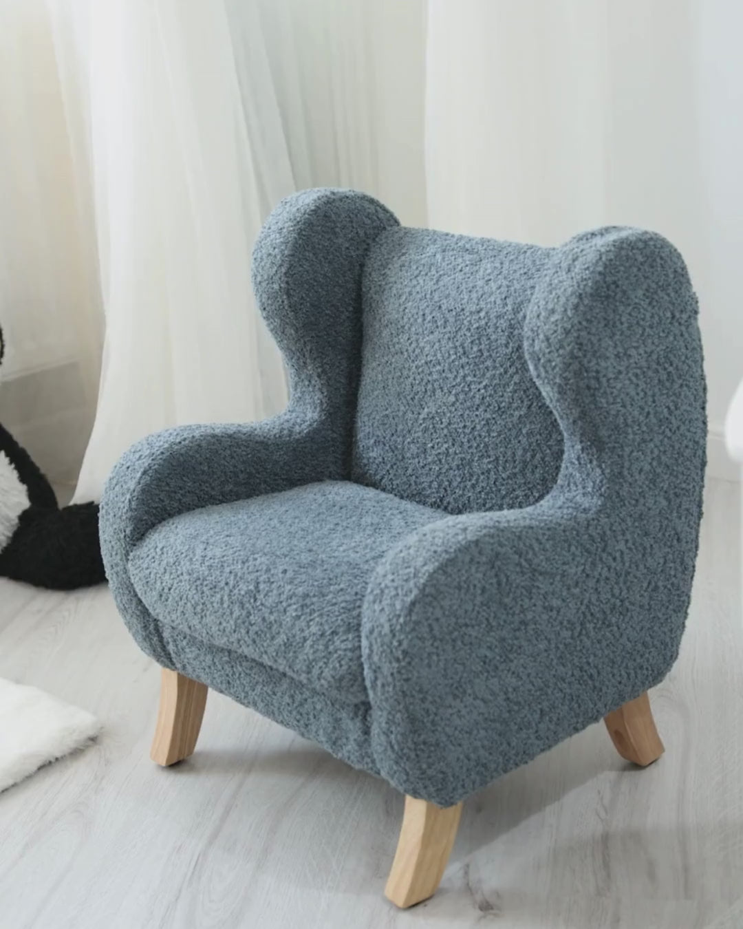 En mjuk och bekväm bouclefåtölj som snabbt blir barnets favorit. Perfekt för mysiga sagostunder och lugna pauser. Med stabila ben i gummiträ, rundade hörn och lättskött material är den både trygg, praktisk och enkel att placera i hela hemmet.