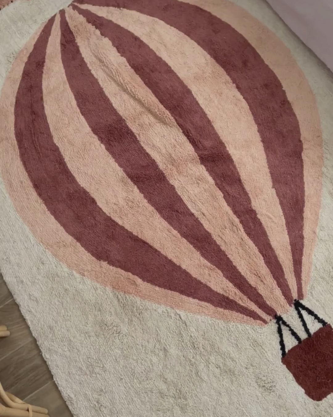 Letar du efter något alldeles extra? Denna handgjorda, tuftade bomullsmatta kombinerar tidlös elegans med lekfull fantasi. Den mjuka benvita nyansen smälter enkelt in i alla inredningsstilar, medan den färgglada varmluftsballongen tillför en unik och glädjefylld detalj. Perfekt för barnrummet – men lika fin som en charmig blickfångare i vardagsrummet. En matta som lyfter rummet och låter fantasin sväva fritt. 🎈✨
