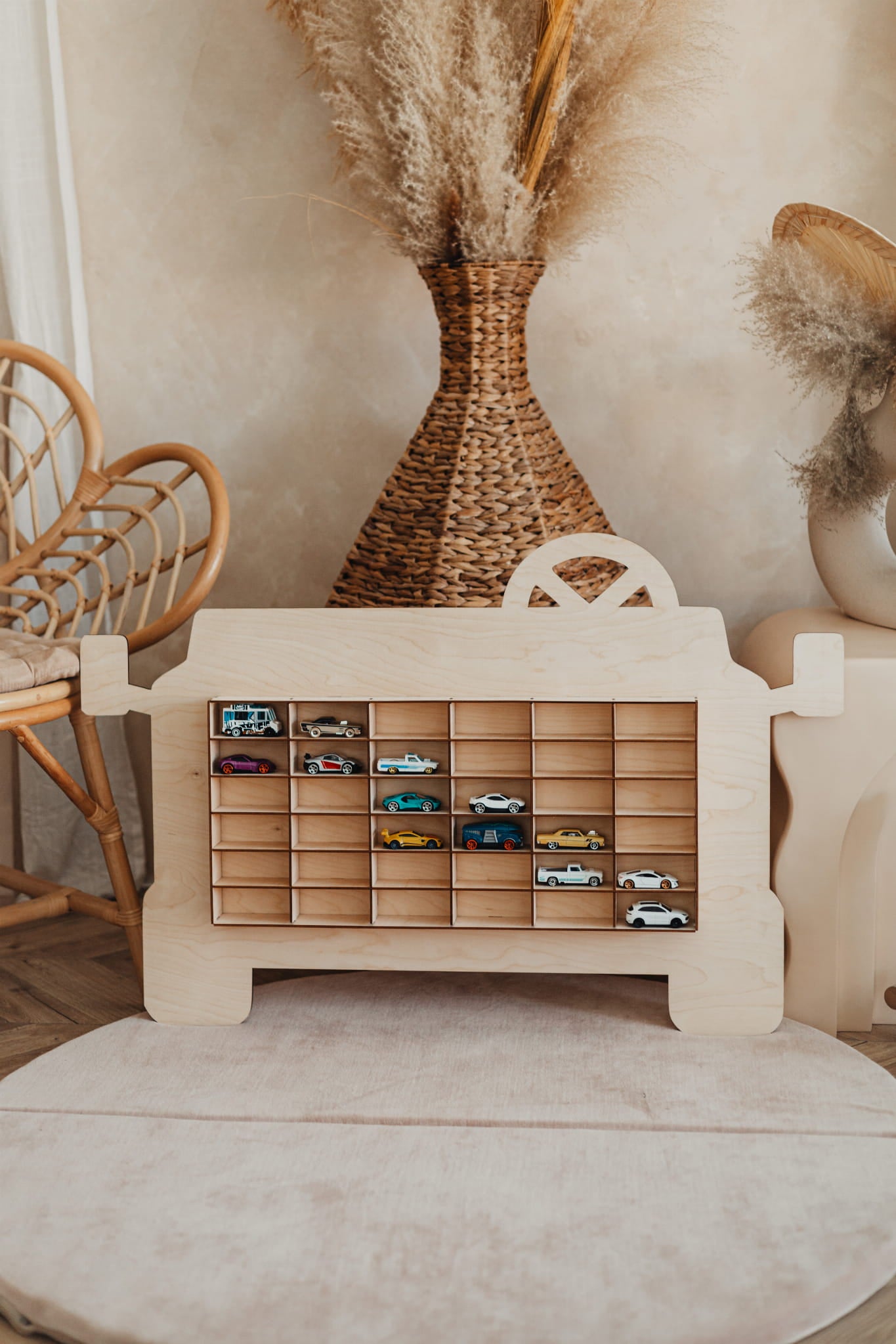đ TrĂ€hylla för smĂ„ bilar â 36 fack av ordning och lek!