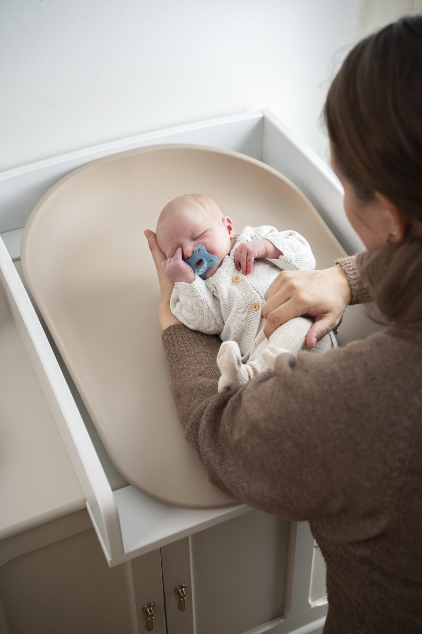 Skötbädden i skum har en mjuk, vattenavvisande yta som är lätt att rengöra. Den är tillverkad av 100% PUR (polyuretan) skum, vilket gör den både stabil och bekväm för ditt barn. De upphöjda kanterna upptill och på sidorna ger ett bra stöd för barnets huvud och ser till att barnet hålls säkert på plats.