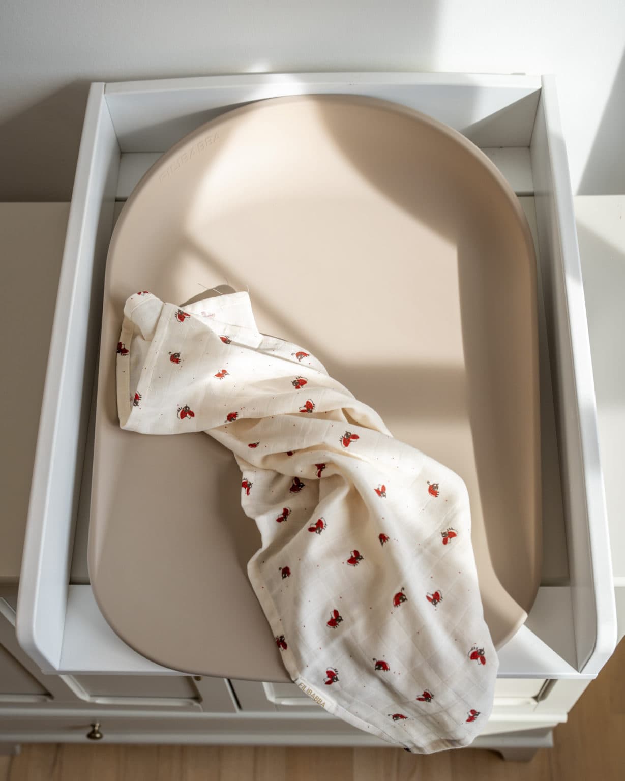 Med en storlek på 68x48 cm passar Bobbie lätt på de flesta skötbord. Dessutom är den lätt att underhålla – torka bara av ytan med en fuktig trasa och ett neutralt rengöringsmedel.