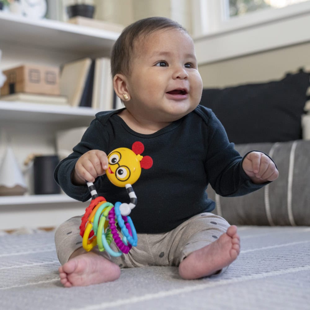 Varje ring designad med spännande strukturer som stimulerar barnets sinnen och stöder utvecklingen av finmotorik. Fäst ringarna tillsammans eller använd dem för att fästa barnets favoritleksaker på en barnvagn eller bilbarnstol.