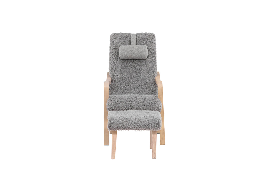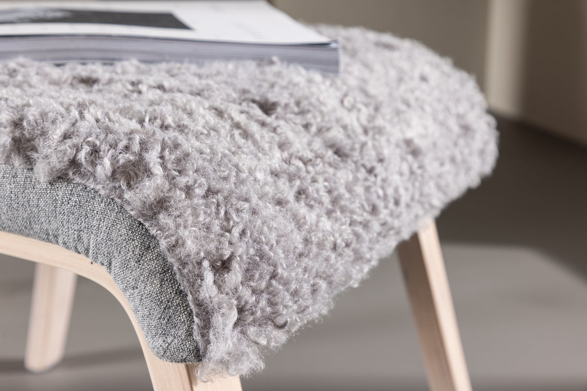 Det ljusgrå, pälsliknande tyget ger fåtöljen en både lyxig och mysig känsla som direkt bjuder in till en stunds avkoppling. Precis lika skön som den ser ut – om inte ännu skönare.