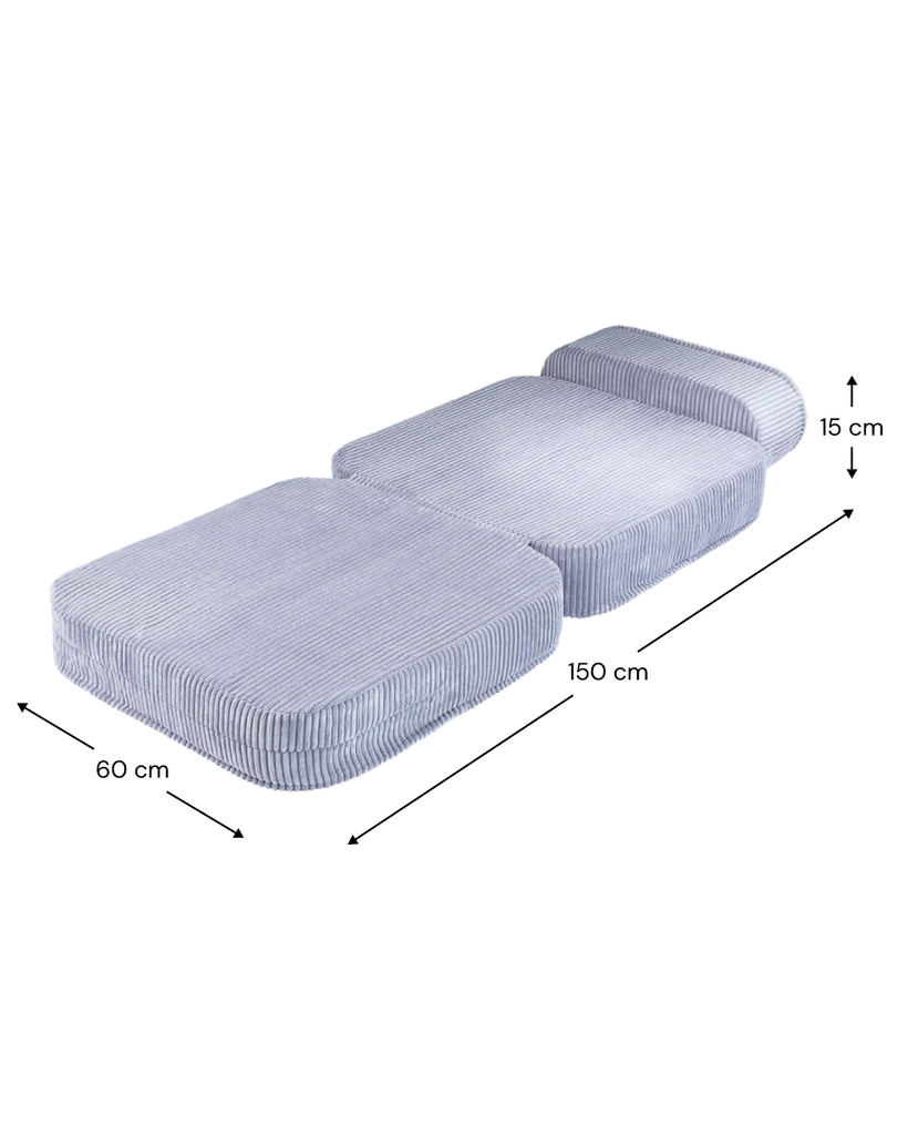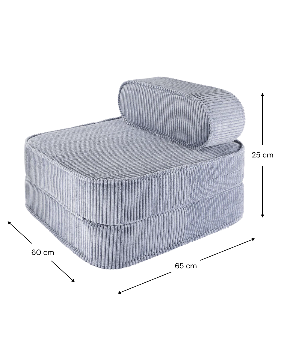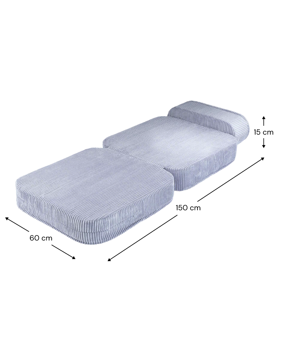 Wigiwama Flip Chair i den ljuva fĂ€rgen Blueberry Blue Ă€r en perfekt mix av stil, funktion och lekfullhet. Den Ă€r en cool stol pĂ„ dagen och förvandlas snabbt till en mysig madrass pĂ„ kvĂ€llen â perfekt för filmkvĂ€llar, sagostunder eller övernattningar med kompisar.