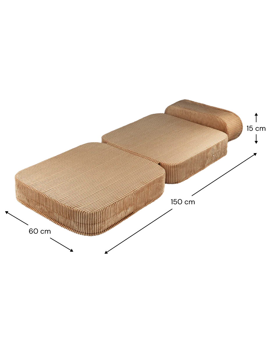 Wigiwama Flip Chair i den varma färgen Toffee är den perfekta mixen av stil, funktion och lekfullhet. En cool stol på dagen – en mysig madrass på kvällen! Bara fäll ut och skapa en plats för filmkvällar, sagostunder eller spontana övernattningar med kompisar.