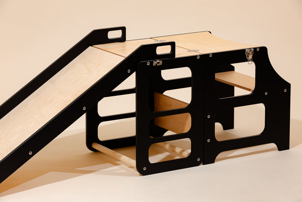 Tack vare möjligheten att fästa en rutschkana kan tornet också förvandlas till en rolig lekstation som bjuder in till rörelse och glädje – perfekt när energin bubblar över.