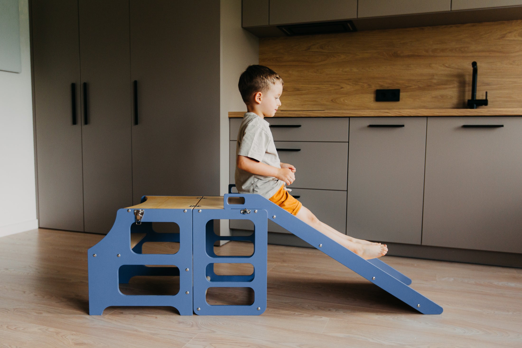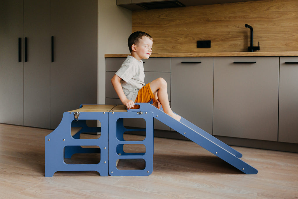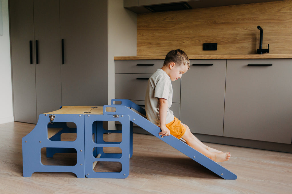 Men vänta… det blir ännu roligare! Fäst en rutschkana och låt tornet förvandlas till ett miniäventyrsland där barnet kan susa ner efter att ha hjälpt till med middagen.