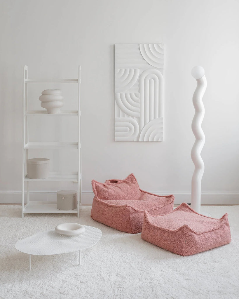 Wigiwama Square Ottoman i färgen Guava är klädd i fluffigt, mjukt teddytyg som inbjuder till mys, lek och sköna stunder. Den friska, lekfulla Guava-färgen sprider glädje och energi i rummet – perfekt för både barnrummet och hemmets mysiga hörn.