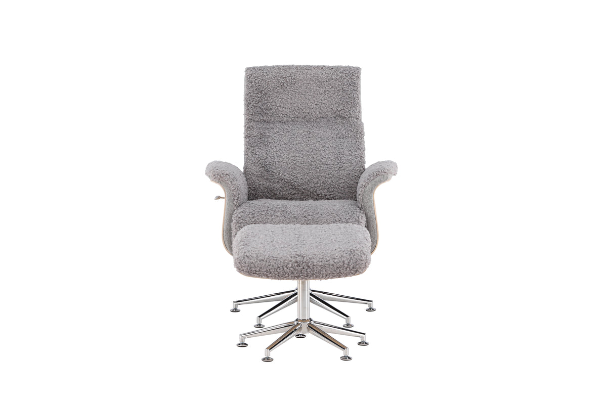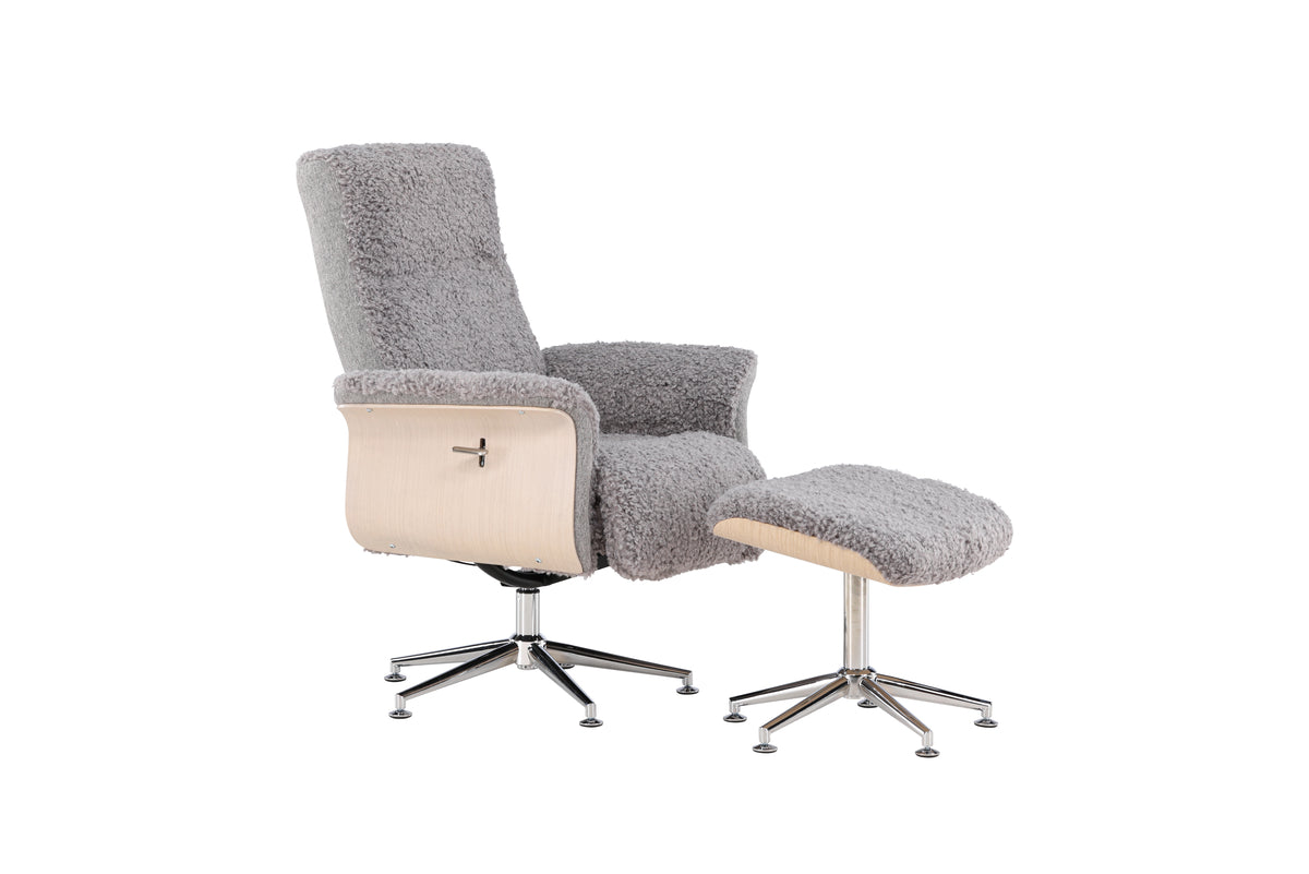 Hagön – Fåtölj med Fotpall i Grått Pälsliknande Tyg
