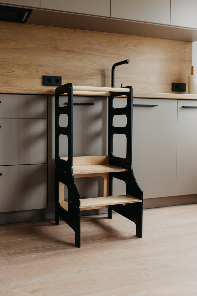 Barn älskar att vara delaktiga, och med ett kökstorn kan de tryggt stå sida vid sida med dig när du lagar mat, bakar eller diskar. Tornet lyfter barnet upp i perfekt höjd vid köksbänken och ger en säker plats att stå på – utan vingliga stolar eller stress.