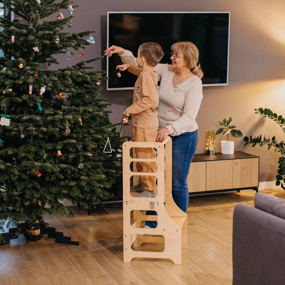 Tack vare sin rena och tidlösa design passar tornet perfekt i både moderna och klassiska hem. En flexibel, säker och rolig lösning som uppmuntrar självständighet och gör vardagen lite enklare – och mycket roligare!