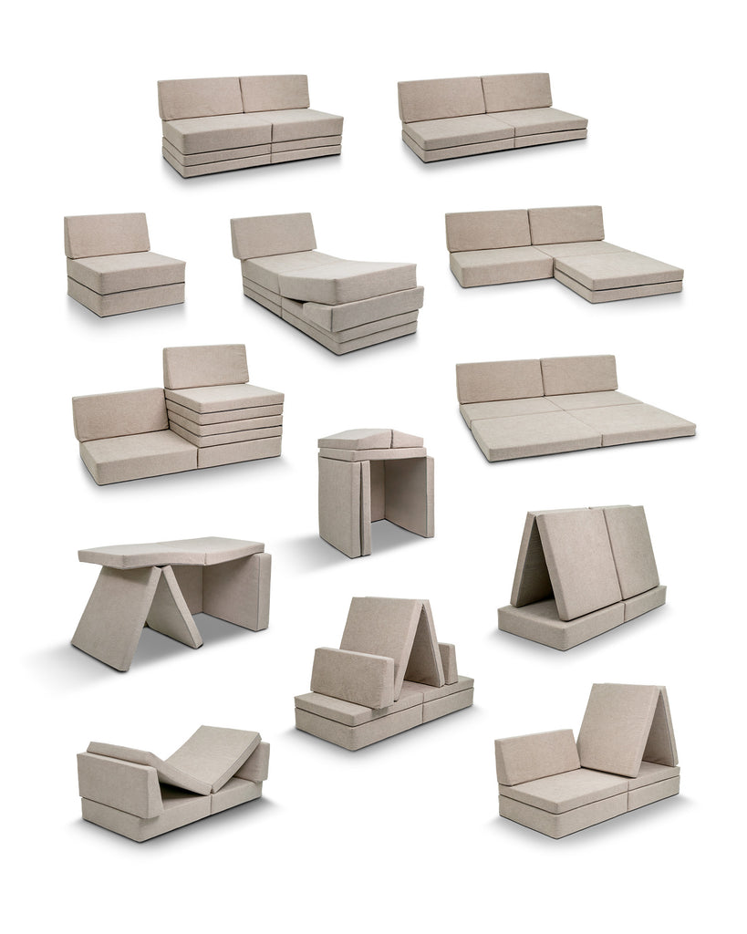 KINOS MINI play couch är ett underbart och supermångsidigt tillskott till ditt hem. Den kreativa, modulära minisoffan består av fyra delar som kan kombineras på hur många sätt som helst – förvandlas till en barnsoffa, en mysig golvdivan eller hemliga kojor fulla av fantasi!