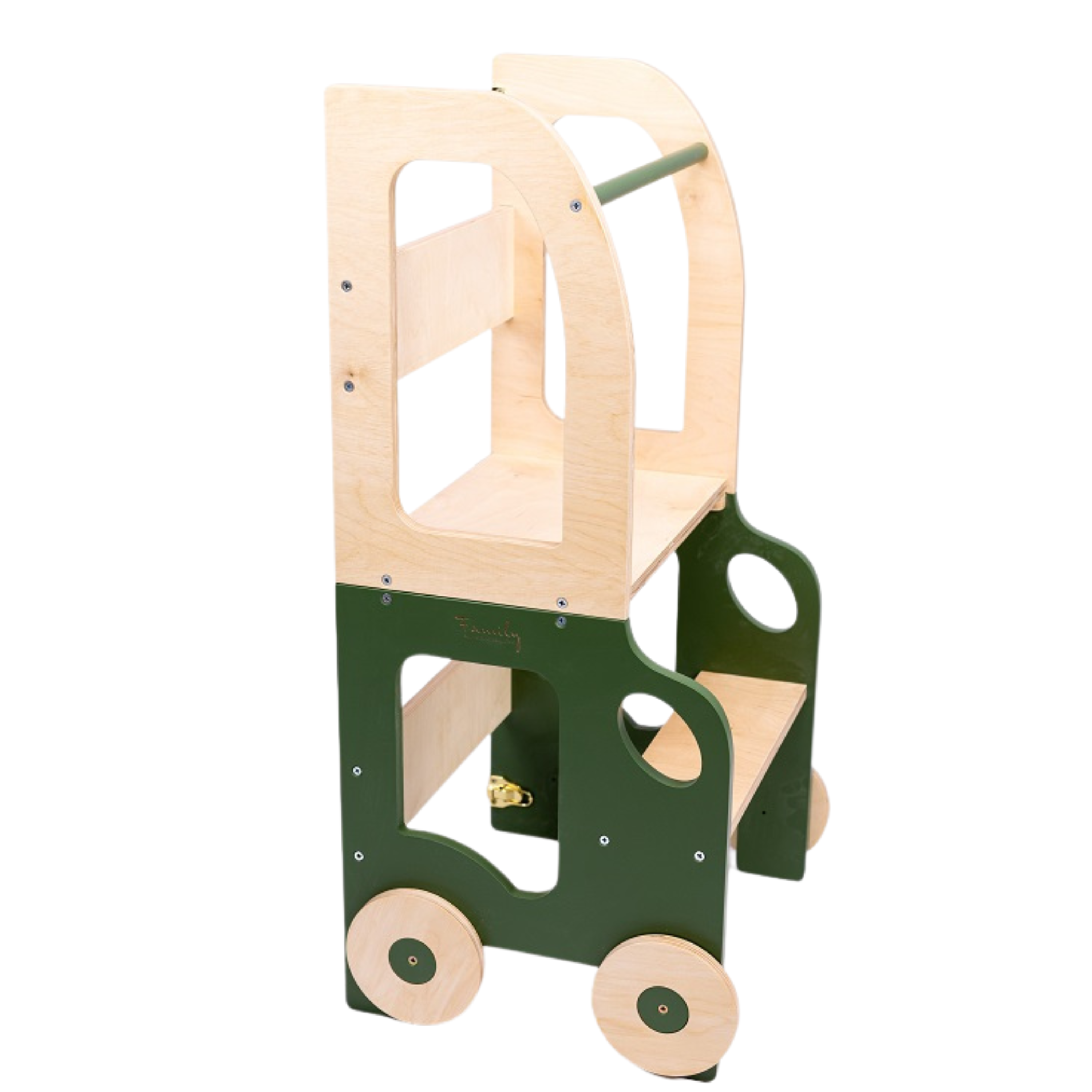 Denna multifunktionella Montessori kökspall kan enkelt förvandlas till bord och stol är designad och skapad för att lära, laga mat, klättra, sitta bredvid vid och skapa, äta eler leka.