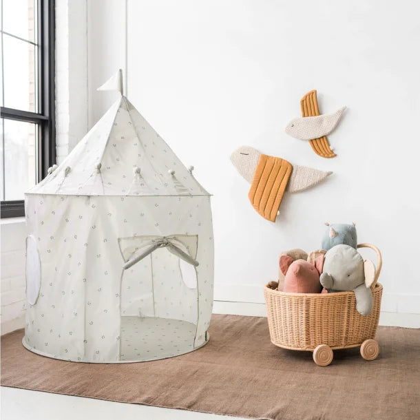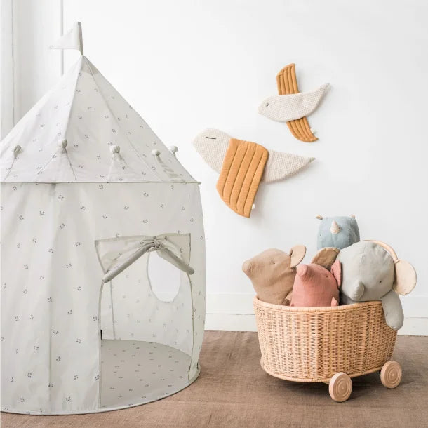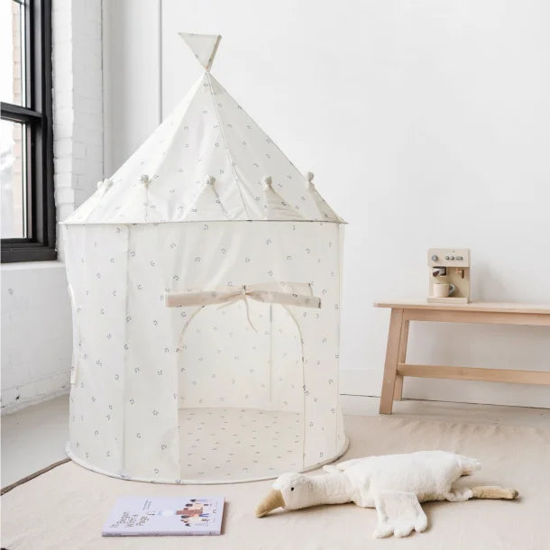 Vackert beige-grått lektält från 3 Sprouts med blåbärstryck