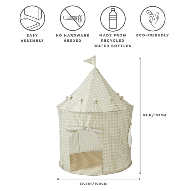 Vackert blå lektält från 3 Sprouts med rutigt mönster.