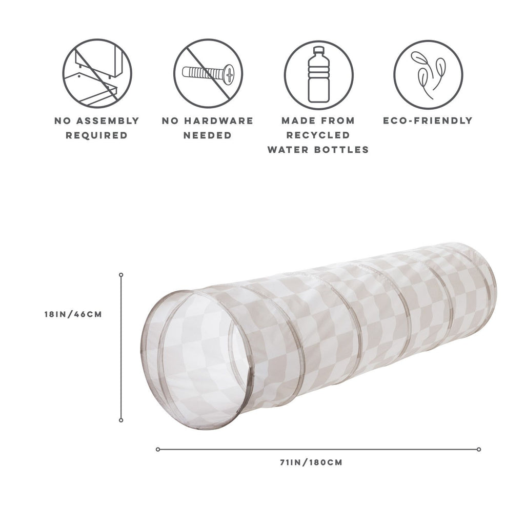 Lektunneln är lätt att flytta runt i hemmet och kan enkelt fällas ihop. Den levereras dessutom med en praktisk förvaringspåse så att du kan lägga undan den platt när leken är slut. Matcha gärna med 3 Sprouts lektält i samma fina färger och mönster för en komplett lekmiljö.