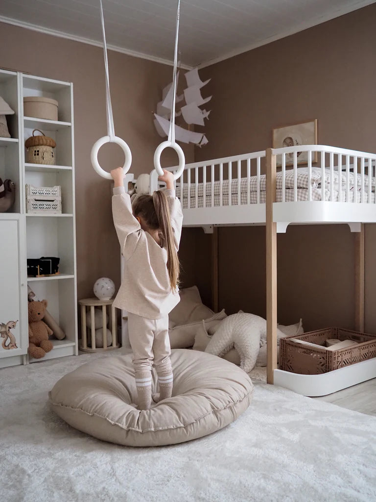 Skapad för att slappa, leka och ta hand om sig själv, stöttar LEMPI både kropp och själ. Här kan du läsa sagor, bygga fantasifulla kojor, meditera, vila eller bara ta en paus tillsammans med ditt husdjur. Kudden matchar dessutom fint med våra väggstänger och tack vare det avtagbara, maskintvättbara överdraget är den enkel att hålla fräsch – eller att variera med ett nytt uttryck när andan faller på.