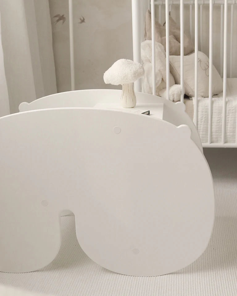 NUPPU är en gunghäst med en twist! Tack vare sin lekfulla och mjukt formade design kan den användas åt båda hållen – och varje vändning avslöjar en ny funktion. När den står upp är den en härlig gunghäst, men vänder du den på huvudet… poff! – plötsligt är den ett litet skrivbord med bänk eller ett gulligt nattduksbord för barnrummet.
