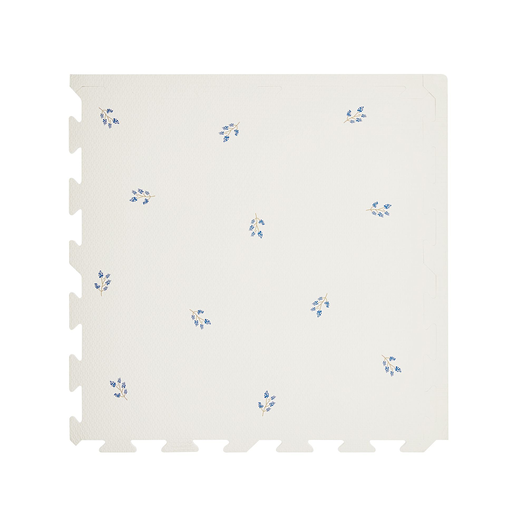 Gör lektiden ännu roligare med detta stora golvpussel i EVA-skum från 3 Sprouts – elfenbensfärgat och prytt med ett gulligt blåbärstryck.