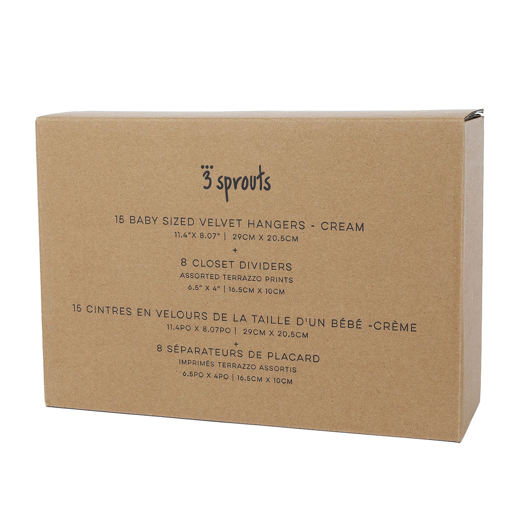 Set 15-pack Velourgalgar + 8-pack Garderobsavdelare, Cream/Terrazzo