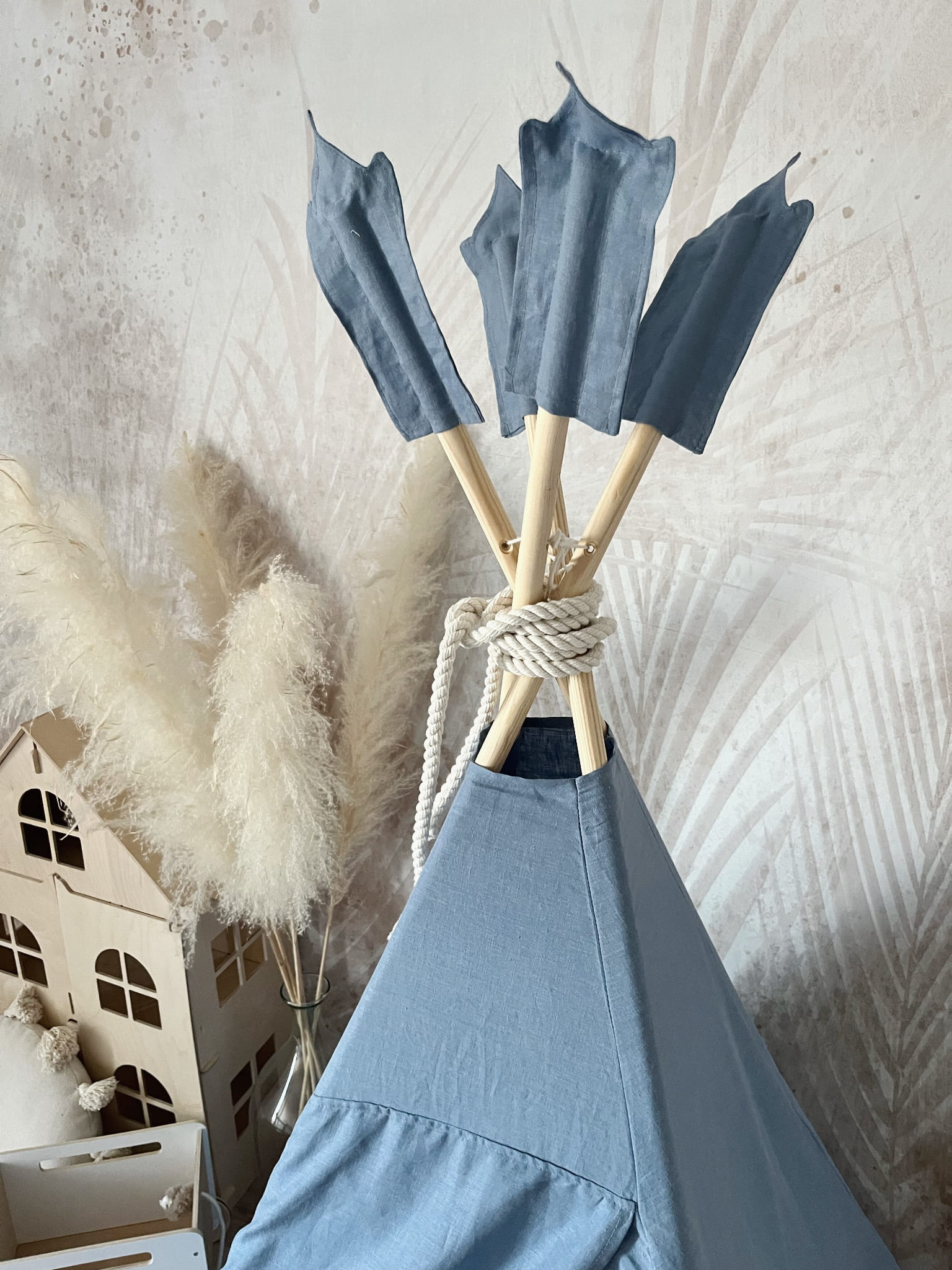 Monios tipi-tält är skapade för att bli barnens egna lilla reträtt – en magisk vrå där äventyren tar fart, mysiga stunder landar och leklusten får blomma utan gränser. Varje tält är tillverkat av certifierade kvalitetsmaterial och formgivet med omsorg, så att det passar lika vackert i ett färgstarkt barnrum som i ett stilrent, modernt hem.
