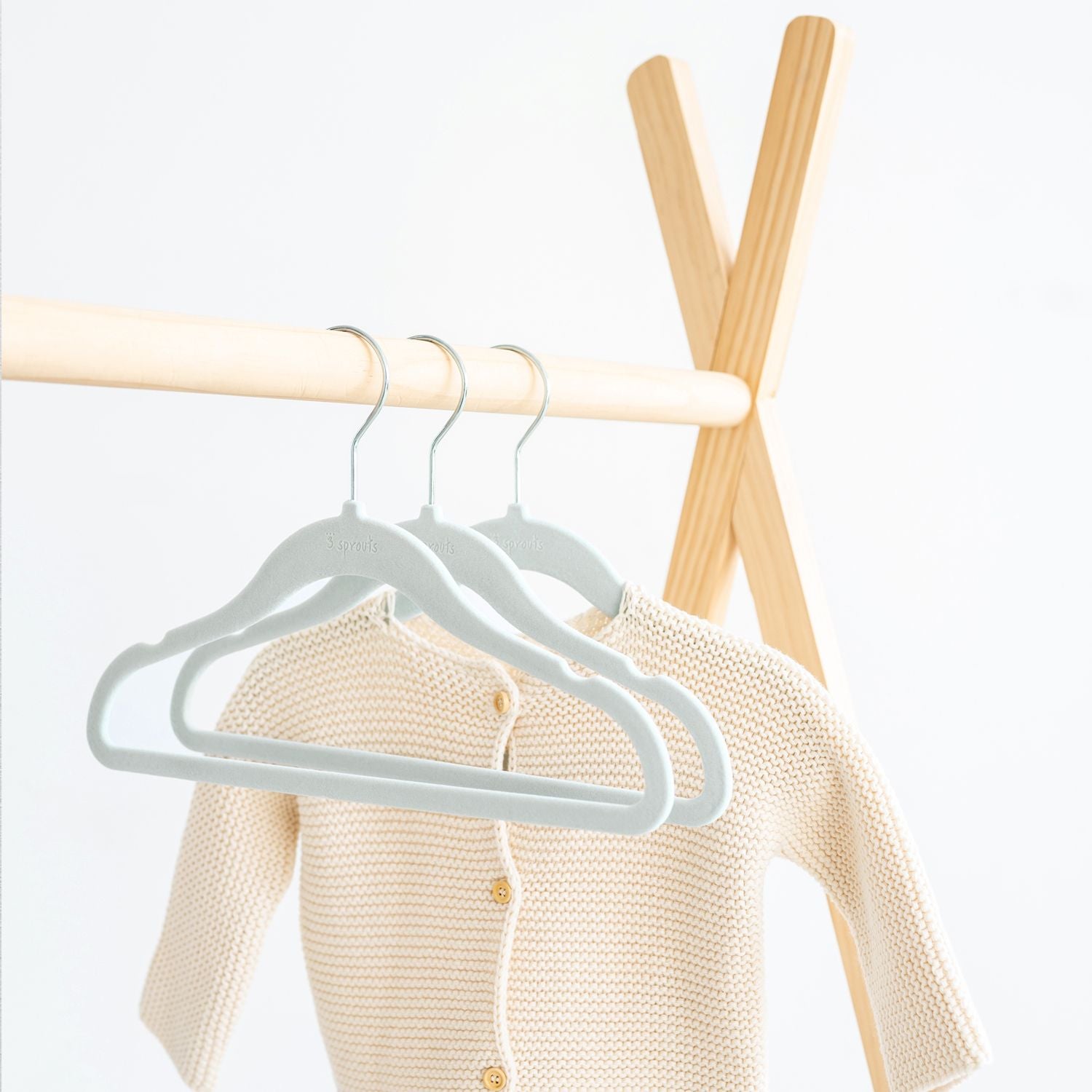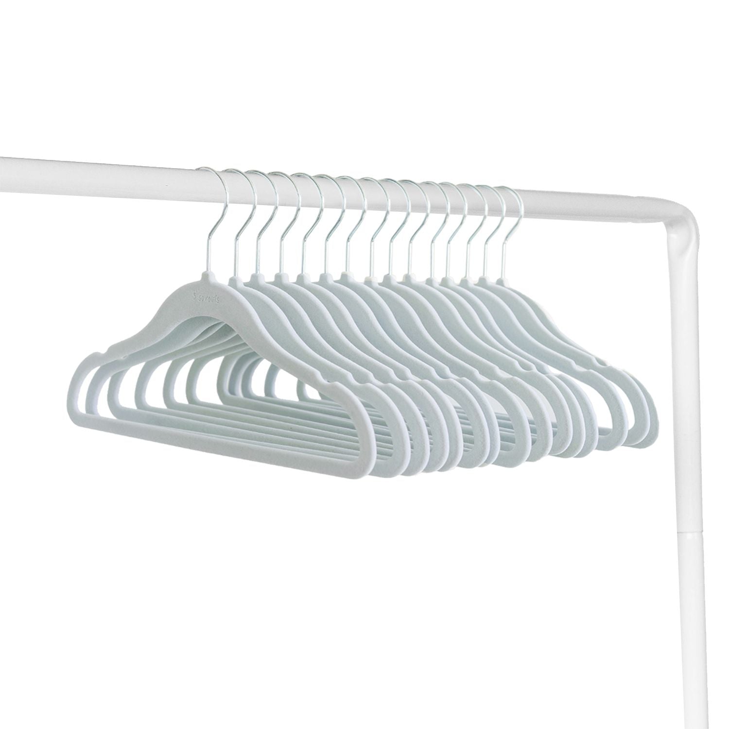 Galgen är täckt med velour som ger en halkfri yta, och de små fördjupningarna för axelband gör att kläderna sitter tryggt utan att halka av. De mjuka, rundade kanterna hjälper dessutom till att bevara klädernas form.
