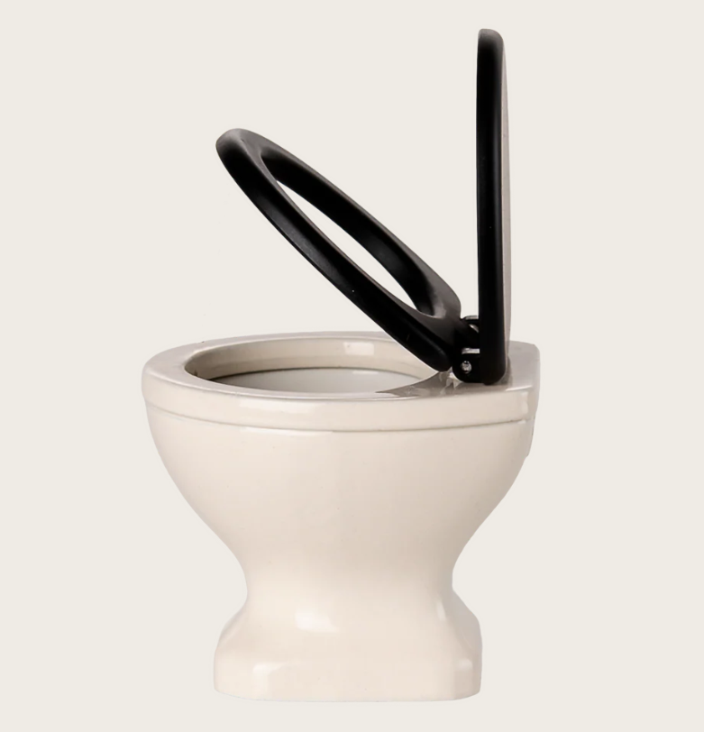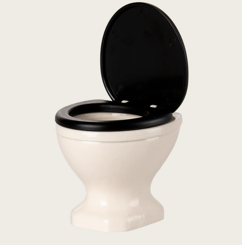 Den är charmigt tillverkad i mjuk off-white med ett elegant svart toalock som går att både öppna och stänga. Med det lilla handtaget som går att “spola” blir leken ännu mer verklighetstrogen. Perfekt storlek för hela musfamiljen – redo att skapa massor av små vardagsäventyr!